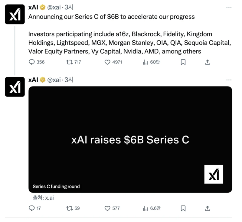 - Elon Musk's xAI announced that it has raised 8.7 trillion won in Series C funding.