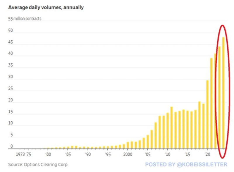 According to the post, the options trading volume has tripled over the past seven years.