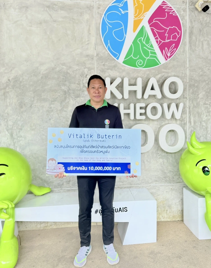- Vitalik Buterin has donated $290,000 to Thailand's Khao Kheow Zoo.