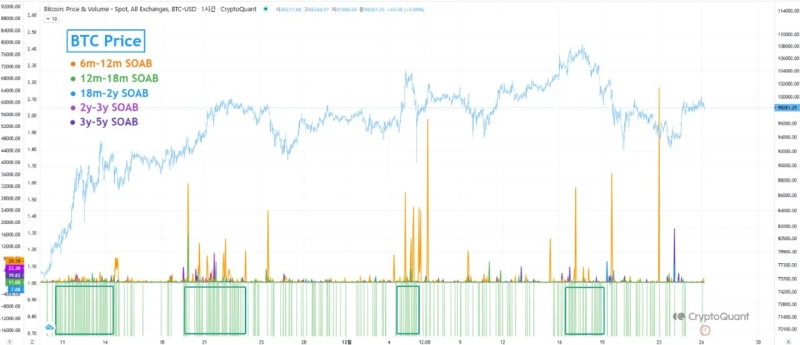 On the 26th (local time), Yonsei Dent, an analyst at the on-chain analysis platform CryptoQuant, explained, "Looking at the Bitcoin SOAB (Spent Output Age Bands) indicator, the downward pressure emerged as the holdings of mid-to-long-term holders who accumulated Bitcoin during the ETF issue rally earlier this year decreased, but new demand is supporting this, keeping the price in the 90-100K range."