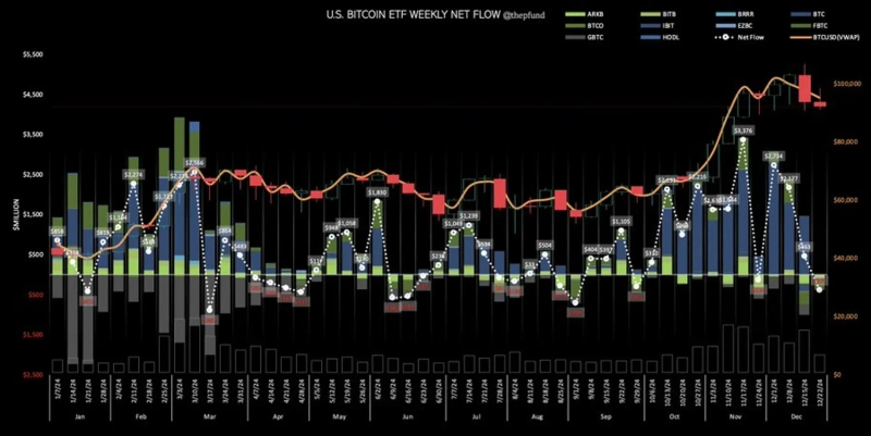 Last week, Fidelity FBTC experienced the largest net outflow, losing $183 million, while BlackRock IBIT recorded a net outflow of $22.7 million. Only Grayscale Mini BTC and VanEck HODL saw net inflows of $990,000 and $100,000, respectively.