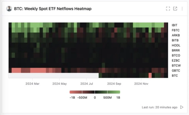- BlackRock's Bitcoin ETF IBIT recorded a negative weekly net inflow for the first time in three months.