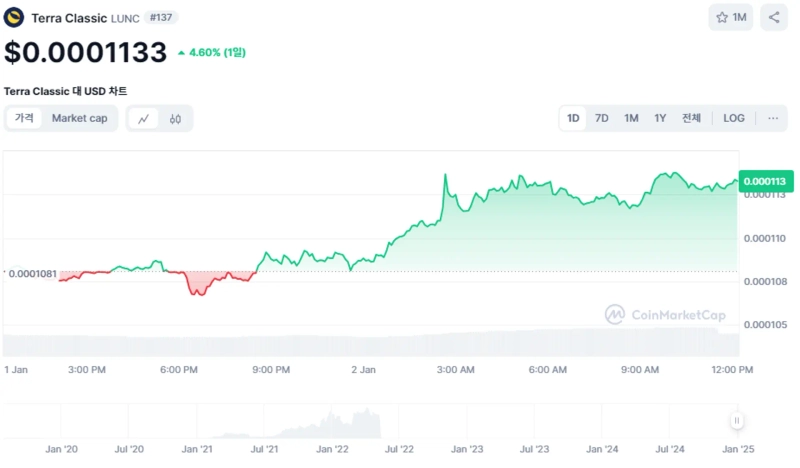 On the 2nd, Terra Classic is trading at $0.0001133, up 4.55% from the previous day according to CoinMarketCap.