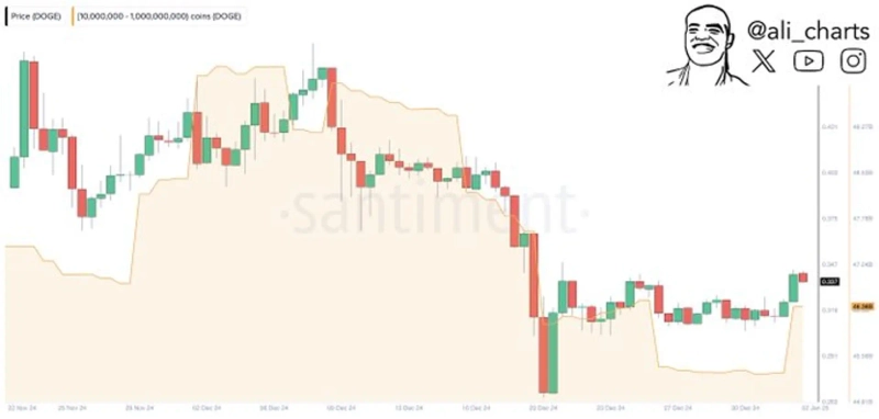 On the 2nd (local time), virtual asset analyst Ali Martinez stated on X, "Whales have purchased more than 1.08 billion Dogecoins in the last 24 hours."