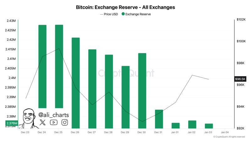 On the 3rd (local time), cryptocurrency analyst Ali Martinez stated on X, "Over 48,000 BTC were withdrawn from exchanges last week," adding, "This is valued at over $4.5 billion." Typically, Bitcoin withdrawals from exchanges are interpreted as a positive signal for price increases as they reduce the supply of Bitcoin on exchanges.