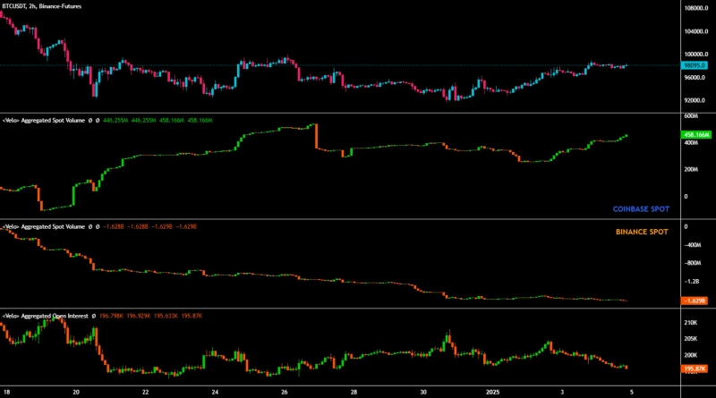 On the 4th (local time), Anıl, a virtual asset analyst, stated on X, "Coinbase Bitcoin spot is continuing to maintain a buying position," and added, "I think the Binance Bitcoin spot selling pressure will also disappear soon." He further explained, "The funding rate is also maintaining a low level," and "maintaining a high price at a low funding rate is a good signal."