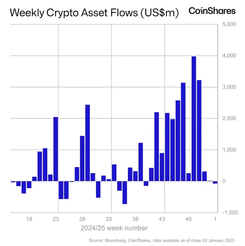 Last Week's Digital Asset Investment Products Saw $75 Million Outflow... $580 Million Inflow in the First 3 Days of the New Year