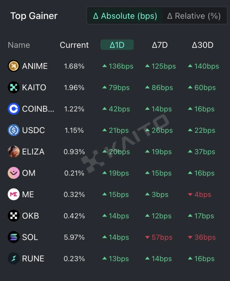 - AnimeCoin received significant attention due to its partnership announcement with Kaito.