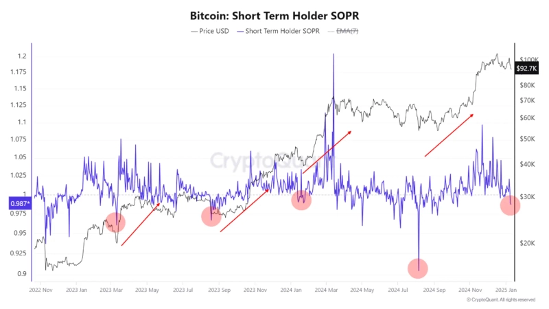 - The current SOPR indicator reveals that short-term investors are selling at a loss.