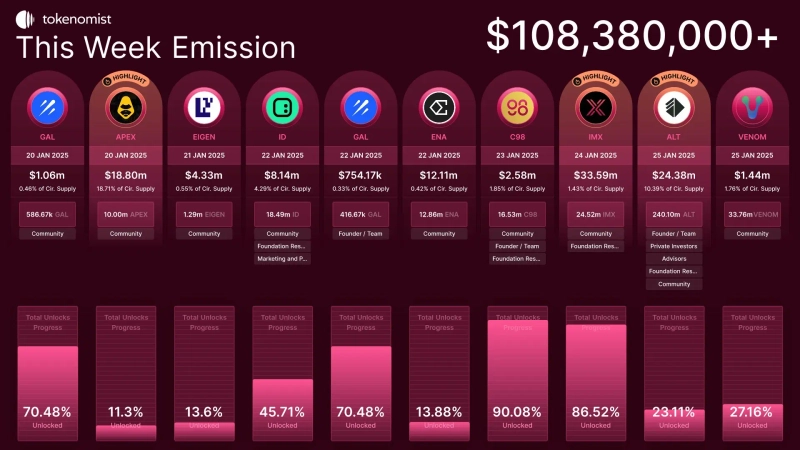 - The total value of tokens to be unlocked next week is estimated to be around $100.38 million.