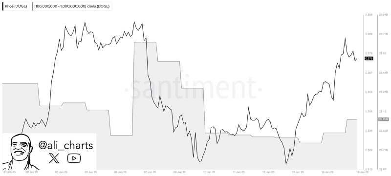 - Ali Martinez revealed that whales have purchased 200 million DOGE in the past 48 hours.
