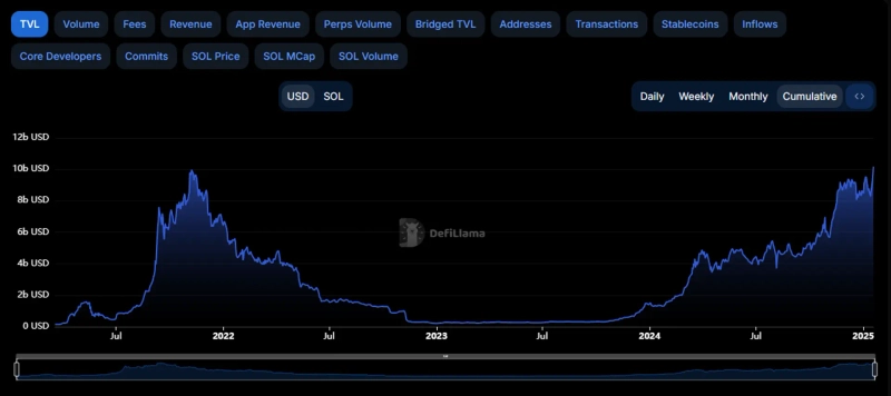 According to DeFiLlama data on the 17th (local time), Solana's TVL recorded $10.172 billion, surpassing its previous all-time high. The previous record was $10.027 billion in November 2021.