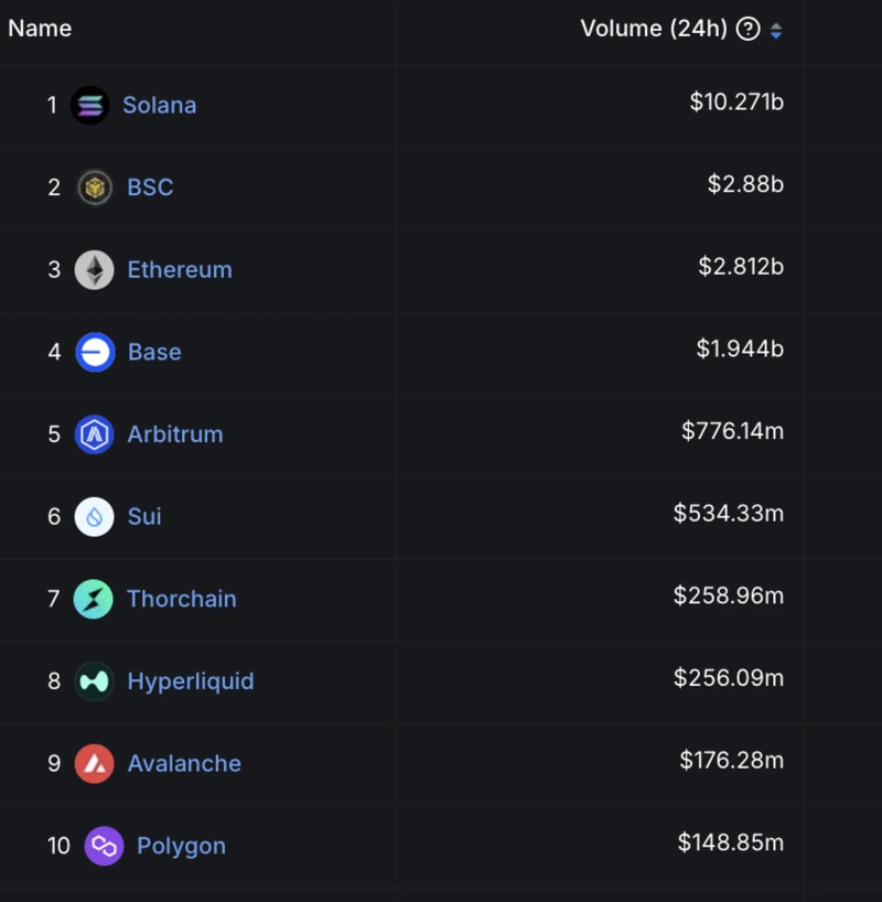 On the 17th (local time), SolanaFloor announced on X that "the 24-hour trading volume of Solana DEX has reached $10.271 billion," stating that it is "the first blockchain to reach the milestone of $10 billion."