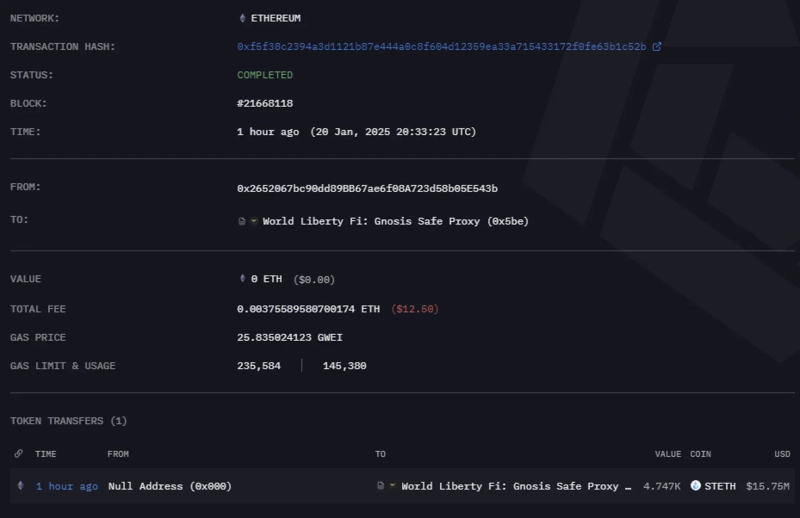 - World Liberty Financial recently reported staking 4747 ETH through Lido Finance.