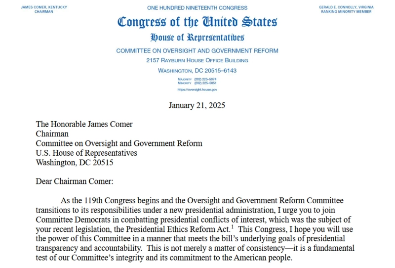 According to Cointelegraph on the 22nd (local time), Democratic Congressman Gerald Connolly stated in a letter that President Trump's cryptocurrency business could conflict with his presidential duties and that the House Oversight and Government Reform Committee should thoroughly investigate the matter.