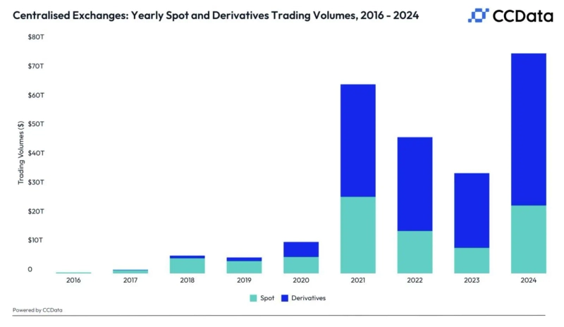 According to the cryptocurrency market insight platform Unfolded on the 24th, the total trading volume of centralized exchanges last year was $75.8 trillion (approximately 10,853 trillion KRW). This is more than $10 trillion higher than the previous record of $65.1 trillion in 2021.