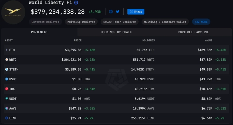 World Liberty Financial Holds the Most Ethereum... Continues to Purchase TRON, etc.