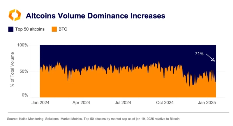 Cryptocurrency data analysis company Kaiko also reported in a research report on the 20th, "After the launch of the Melania meme coin, selling pressure occurred in the Trump meme coin," adding, "Traders seem to have moved funds to seek profits from the new coin. Subsequently, significant volatility appeared in the market." It explained that as the prices of coins that received significant attention in the market fluctuated sharply, volatility spread throughout the altcoin market.