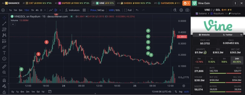 It is reported that the investor additionally purchased VINE on the same day. Lookonchain added, "The investor bought another 13.81 million VINE for $1.69 million from another wallet 9 hours ago, achieving an unrealized profit of $3.4 million in just 9 hours."