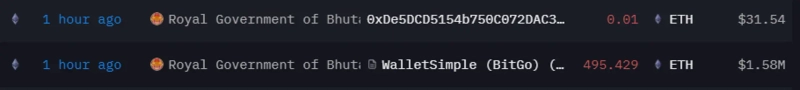 It has been revealed that an address suspected to belong to the Bhutan government transferred Ethereum (ETH) worth $1.58 million to BitGo.