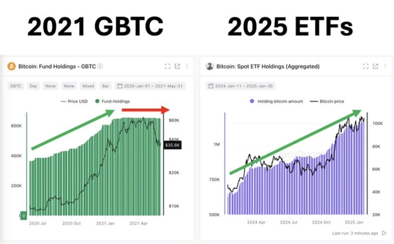 He emphasized, "There is no need to hastily conclude the peak of this cycle until the buying by Exchange-Traded Funds (ETFs), MicroStrategy, and institutions slows down." In 2021, a significant decline in GBTC inflows marked the beginning of a major downtrend.