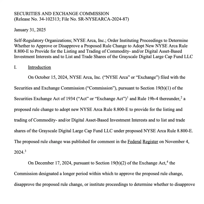 According to industry sources on the 31st (local time), the SEC announced that it would extend the period necessary to decide on the approval of the ETF conversion for the Grayscale Digital Large Cap Fund under Section 19(b)(2) of the Securities Exchange Act.
