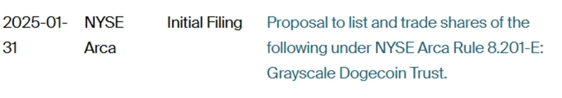 On the 31st (local time), James Seyffart, a Bloomberg ETF analyst, announced on his X that "Grayscale submitted the 19b-4 form to the SEC for ETF conversion just one day after launching the Dogecoin Trust."