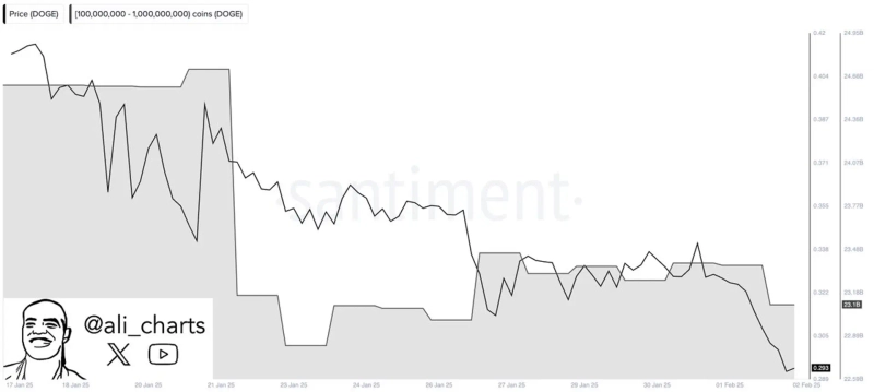 - Analyst Ali Martinez reported that whales sold 270 million Dogecoin (DOGE).
