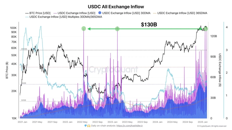Today, Major Exchanges See Inflow of 130 Billion USDC... "4 Times the Average Annual Daily Inflow"