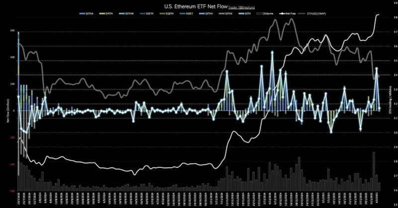 According to Trader T on the 6th (local time), the US Ethereum spot ETF recorded an inflow of $18.11 million the previous day. This is approximately 26.2 billion KRW.