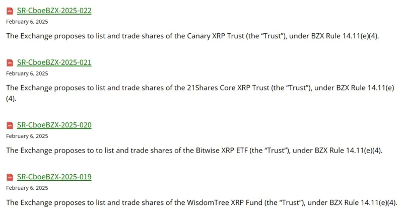 On the 7th (local time), James Seyffart, a Bloomberg analyst, reported on X (formerly Twitter) that "CBOE has submitted Ripple spot ETF 19b-4s for four issuers, including Bitwise and Kinetics Funds, as well as WisdomTree and 21Shares, to the SEC."