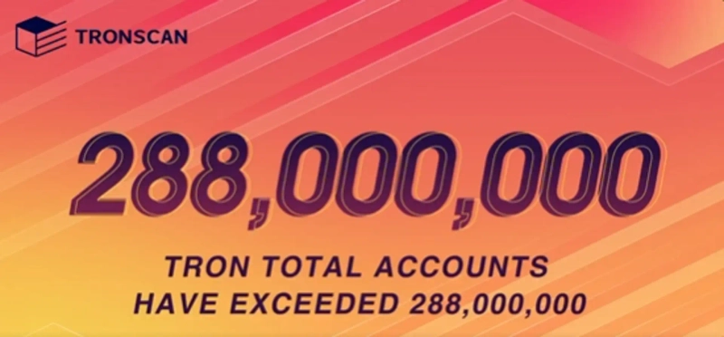 On the 9th (local time), Tronscan announced on X, "The total number of accounts on TRON has surpassed 288 million," adding, "The TRON ecosystem is rapidly developing."
