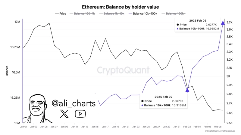 On the 11th (local time), Ali Martinez, a crypto analyst, stated on X, "According to CryptoQuant data, whales purchased over 600,000 ETH last week."
