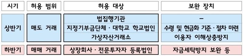 - The allowance of virtual asset trading for general corporations will be considered in the medium to long term after market analysis and system adjustments.