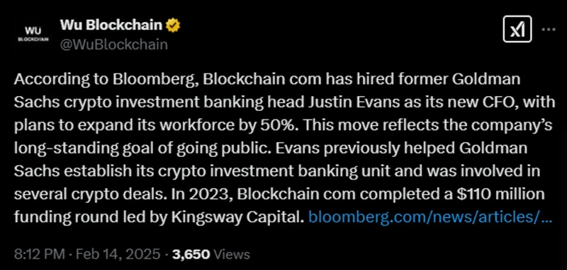 Meanwhile, Blockchain.com plans to expand its workforce by up to 50%, which is explained as a measure towards the company's long-standing goal of going public.