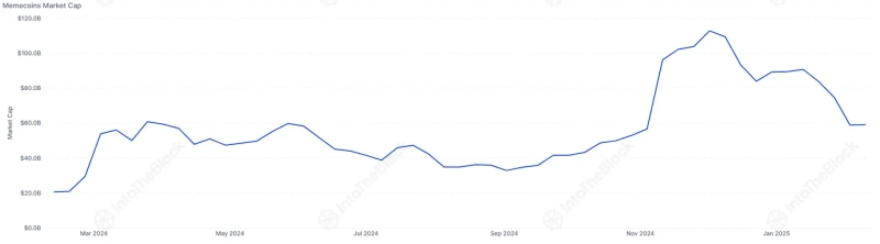 On the 18th (local time), IntoTheBlock reported via X that "meme coin market cap has been declining for several months and is approaching levels from last November," adding that "essentially all gains made during this winter have been reversed."