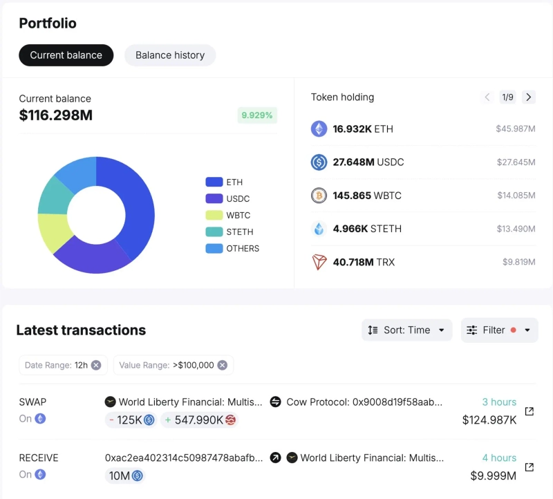 - The WLFI multi-sig wallet withdrew 10 million USDC and purchased 200 million WLFI.