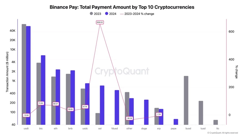 On the 20th (local time), Julio Moreno, Head of Research at CryptoQuant, reported that "Binance Pay users tripled year-over-year to 41.7 million in 2024, with total transaction volume significantly increasing to $72.4 billion from $2.5 billion in 2021," indicating that "crypto payments are becoming part of daily life."