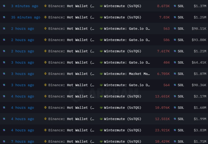Earlier, Solid Intel had reported that "over the past 4 hours, Binance has been selling large amounts of Solana through Wintermute."
