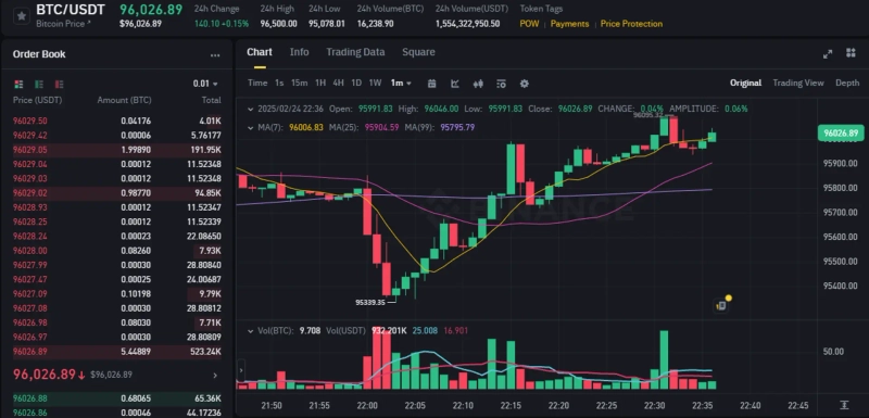 As of 10:37 AM, Bitcoin is trading at $96,026 on Binance's USDT market, up 0.15% from 24 hours ago.