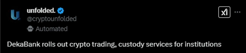According to virtual asset (cryptocurrency) market insight platform Unfolded on the 24th (local time), German major bank DekaBank has launched virtual asset trading and custody services for institutional investors.