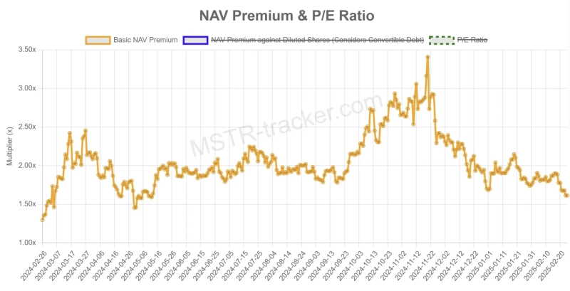 On the 25th (local time), crypto analyst Miles Deutscher revealed via X that "Strategy's market cap to BTC holdings premium ratio has dropped from its November high of 3.4 to 1.6." He added, "As this ratio decreases, it will become more difficult for Strategy to secure funding for Bitcoin purchases."
