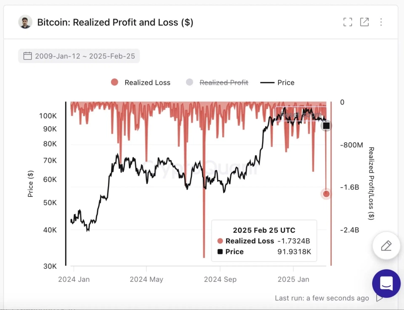 On the 25th (local time), Julio Moreno, a CryptoQuant contributor, announced via X that "Bitcoin holders realized a loss of $1.7 billion yesterday," noting that this was "the largest scale since August last year."