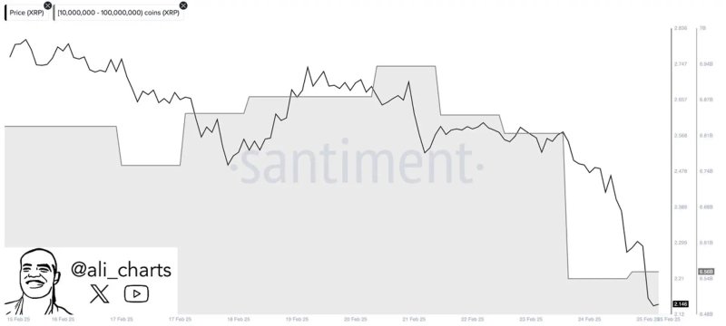 On the 26th (local time), crypto analyst Ali Martinez revealed via X that "whales have sold 370 million XRP in the past 96 hours." This amounts to approximately $845.34 million at current Ripple prices.