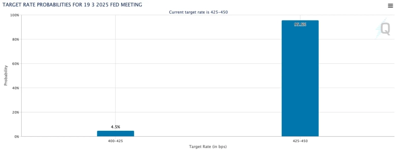 Meanwhile, the Chicago Mercantile Exchange (CME) FedWatch predicts a 95.5% probability that the Fed will keep interest rates unchanged in March, as of 5 PM today. FedWatch forecasts a 53.9% probability that the first interest rate cut this year will occur in June.