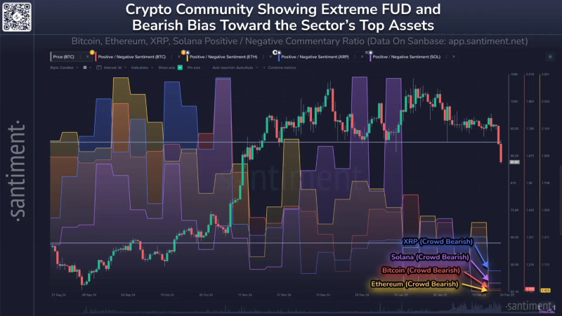 Cryptocurrency investor sentiment is freezing due to this large-scale hacking incident. Cryptocurrency data analytics firm Santiment analyzed on the 26th, "As Bitcoin retreated below $86,000, the cryptocurrency market is showing an overall downward trend. Investor sentiment is virtually bottoming out," adding, "Bitcoin, Ethereum, XRP, and Solana (SOL) are showing extremely bearish sentiment." They further added, "Historically, markets have often formed bottoms when FUD (Fear, Uncertainty, Doubt) spreads and 'surrender' psychology expands as investors panic sell and give up on stocks."