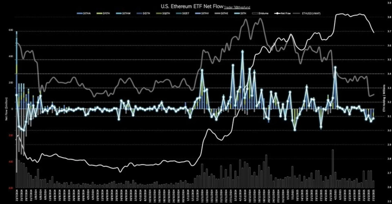 US Ethereum Spot ETF Records Net Outflow of $71.76 Million Yesterday... 6 Consecutive Trading Days of Outflows