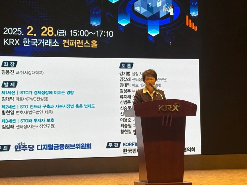 Democratic Party lawmaker Lee Eon-ju, who attended the 'Digital Financial Ecosystem and Security Token Convergence' forum held at the Korea Exchange in Seoul on the 28th, said, "Recently, South Korea has fallen behind in the digital finance sector," adding, "I will work to legislate security tokens." She stated, "In line with the digital transformation era, new fields such as knowledge-based service industries need to accelerate," and added, "As an early presidential election is highly likely, I will ensure that content related to these areas is included (in the pledges)."
