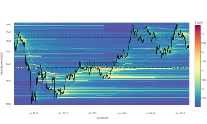 On the 28th, on-chain virtual asset (cryptocurrency) analysis platform Glassnode stated through X (formerly Twitter), "Ethereum is forming a critical support line around $1,890," adding that "1.82 million ETH has been accumulated in this zone. This is an area where investors with strong conviction have bought, and they still remain in the market."