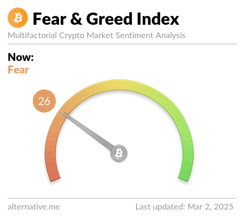 - The Crypto Fear & Greed Index rose to 26 points, indicating a return to the 'Fear' stage.